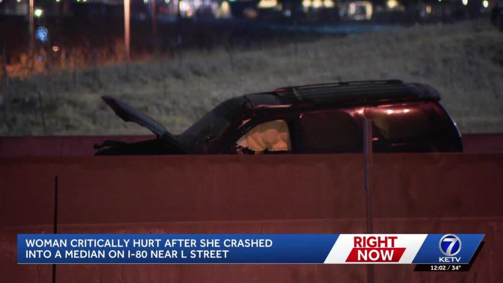 A woman was critically injured after a single-vehicle crash on Interstate 80 late Tuesday night, Omaha police said.