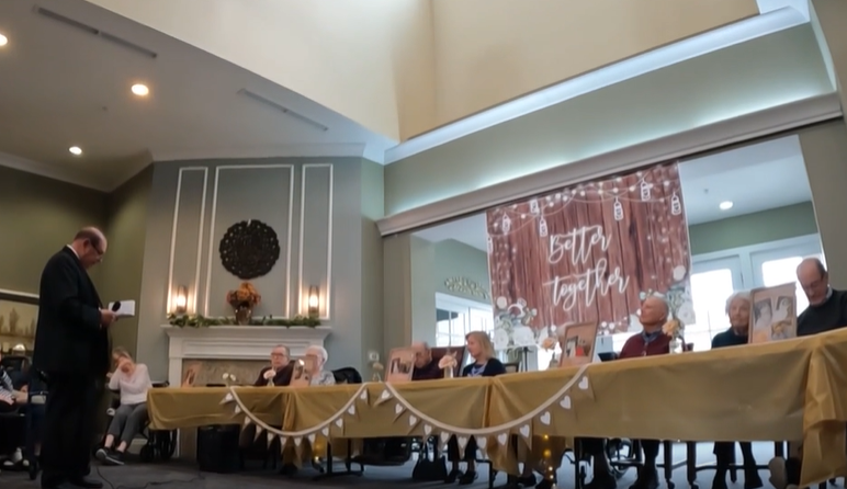 Couples at a memory care facility, married for 50, 60, and even 70 years, gathered to celebrate their enduring love despite the challenges of dementia.