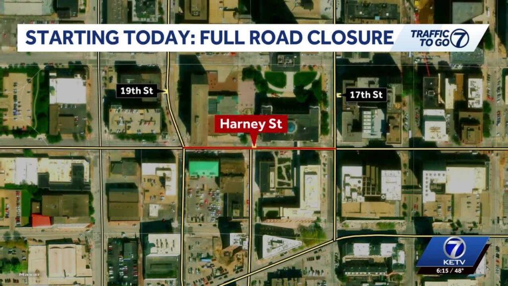 Harney between 17th and 19th streets will close for three weeks beginning Monday, according to Omaha Public Works