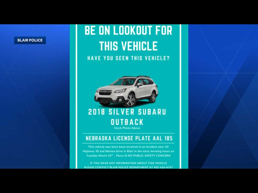 Blair police officers searching for vehicle that may have been involved in crash