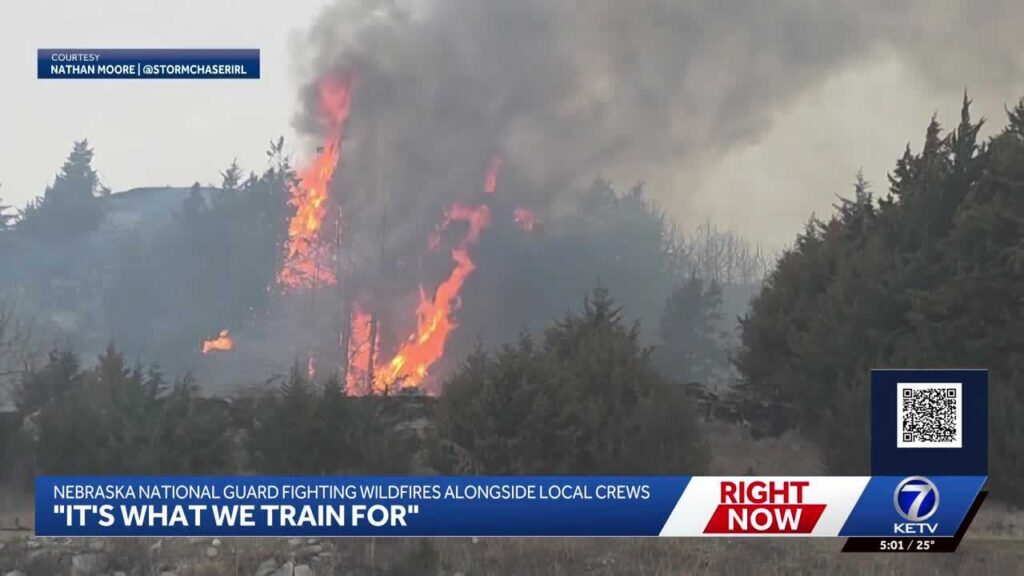 Nebraska National Guard troops are providing crucial assistance to local fire crews battling wildfires in western and central Nebraska, with changing weather conditions posing ongoing challenges.