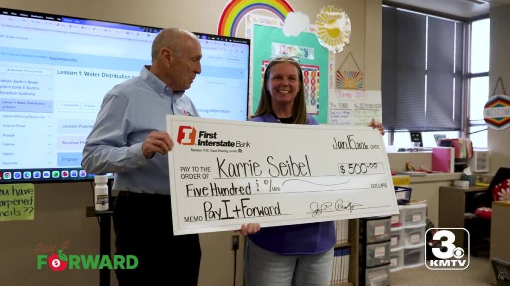 Read the full article on KMTV 3 OMAHA, Neb. (KMTV) — Congratulations to Karrie Seibel, an Omaha teacher who received a $500.00 check from our 3 News Now Pay It Forward Campaign with First Interstate Bank. The nominators shared with us, “I would like to nominate my son’s 5th grade teacher, Ms. Seibel, for the […]