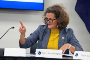 State Sen. Jana Hughes of Seward, vice chair of the Education Committee, said she’s heard stories from schools about young students throwing chairs or desks and disrupting the learning of other students. When those students get older, Hughes said, some ask why they’re being suspended now when they didn’t get the same treatment when they were younger.