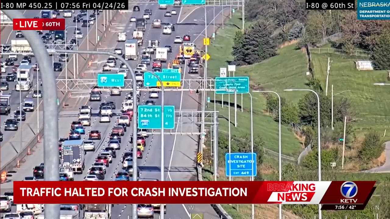A crash near the I-80 westbound exit ramp on to 72nd street slowed morning traffic Friday. A Nebraska Department of Transportation camera showed the crash as it moved off to the side of the interstate. An ambulance was on scene that officials said took one person to the hospital in serious condition. No one else was hurt. Omaha police are investigating what caused the crash.