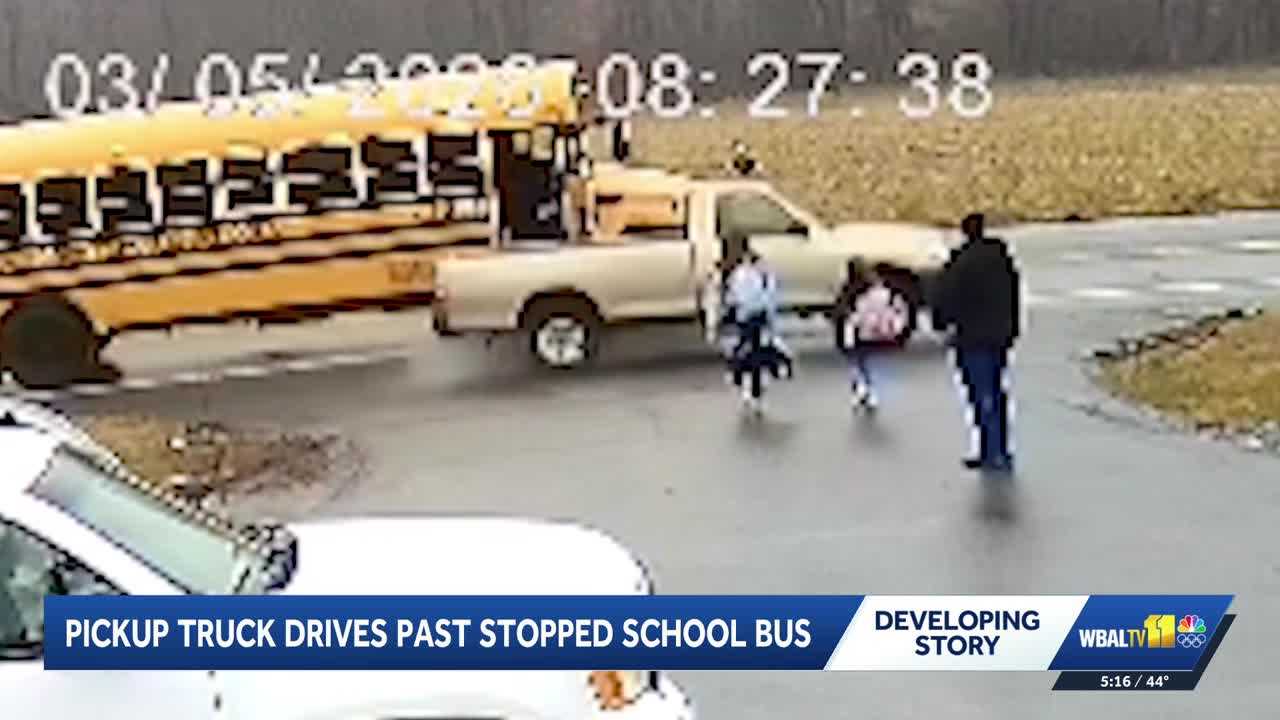 Sheriff’s deputies in Cecil County, Maryland, are searching for the driver of a Toyota pickup truck after it flew by a stopped school bus and narrowly missed two girls.Deputies are receiving plenty of help from social media, with many people outraged over the video of the incident.Tire marks along a grass embankment and security video sister station WBAL-TV obtained from Duvall’s Lawn and Garden show just how close two girls, ages 7 and 11, came to getting hit.A school bus stopped to pick up the children. Cecil County sheriff’s deputies said the bus had its flashing lights on, warning drivers they needed to stop.Video shows a Toyota pickup truck pulling up to the right and going around the bus, passing between the bus door and the children who were about to board.The mother of the 7-year-old was standing nearby, watching helplessly.”She was visibly upset, shaking,” said Brandon Stewart, a parent of the 7-year-old.”I pulled up the camera. I’ve never seen anything like that in my life. It’s crazy. That’s the only way I can say it,” said Shawn Kennedy, the 11-year-old girl’s father.Cameras on the bus also captured images of the pickup truck.”It’s very disturbing that somebody doesn’t have the common sense to wait five seconds so kids can get on the bus,” Stewart said.Deputies are trying to identify the driver. The sheriff’s office issued a “be on the lookout” for the truck.”This was a very dangerous incident. This person did this at a high speed. We don’t know why the person was doing this, why the person chose to pass the school bus in that manner,” said Capt. Michael Holmes with the Cecil County Sheriff’s Office. “Was the person in a hurry, committing a crime? That’s all the stuff we’re looking at.”Kennedy talked to his daughter when she got home.”I said, ‘Are you OK?’ She said, ‘Yes, but dad, if I took one or two more steps, that truck would have hit me,'” Kennedy said. “That’s what hit me the worst.”The two fathers said while in school, counselors assisted the girls and allowed them to talk about the incident.