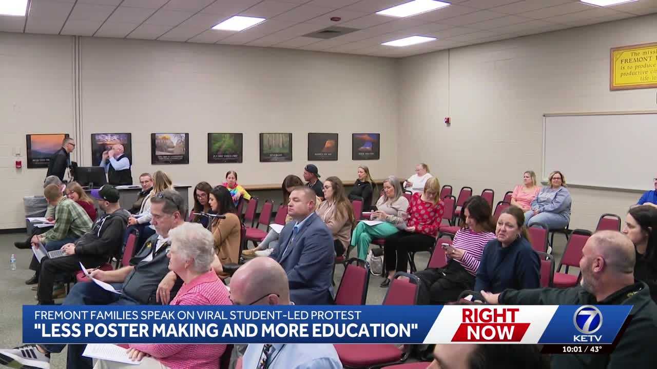 The Fremont School Board said it knew about a student-led demonstration that left one girl hurt, days before it happened. The board of education shared new updates on the protest at its board meeting tonight.Kids told their families that some students were making posters for the demonstration during school hours. Parents call it disruptive and a “complete failure on every level.” “It appears we need less poster making and more education,” concerned grandparent Lana Calvert said.Families went before the board Monday night with blown-up photos of the anti-ICE protest, Calvert saying, “I would view that as a failure.”They shared their frustration with the Fremont Public Schools’ Board of Education.“Now, we’re bending the rules of what the student handbook says to allow these students their chance to go out in protest on something that most of them don’t even understand what they’re protesting,” Fremont parent Kiley Meyer said.The board’s vice president, Terry Sorensen, was happy with the turnout.“I certainly appreciate folks coming in and expressing their opinions, their beliefs. I wish they’d come more often,” he said while also praising school staff.“I think admin and teachers were well prepared. I think they did their job. We followed the rules,” Sorensen said.In his opening statement, Superintendent Dr. Brad Dahl said the school was aware of the protest three days before. “In response, the administration notified the police department to assist with public safety,” Dahl said.Family who drove by the protest, and who were present at the meeting, said, “We actually drove by there a couple times and did not see any police in front of the school.”One Fremont man, Audie Calvert, said he’s frustrated with how residents’ taxes are being used.“There are a lot of others out there who believe, as I do, that this is not what we are paying for,” Calvert said.Kiley Meyer said this could’ve been prevented.“Had we known about this in advance, we could have aided in discussing that with our children,” Meyer said. Sorensen said the board intends to discuss the incident with Dahl. “I have no doubt after thinking about this for a while, board members will be calling Dr. Dahl and discussing with him, running some other ideas by him and seeing where it all goes,” Sorensen said.NAVIGATE: Home | Weather | Local News | National | Sports | Newscasts on demand |