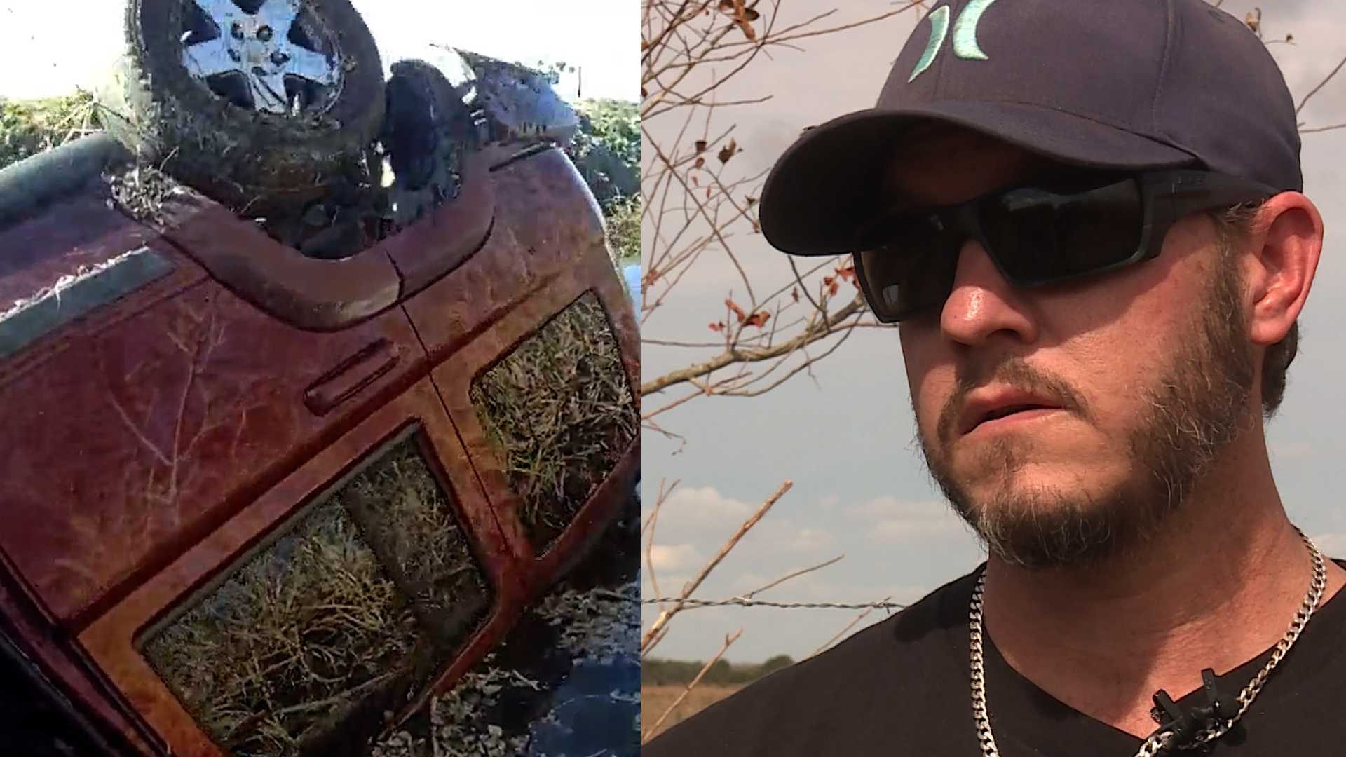 He quickly pulled over and turned around while dialling 911. Curtis said he followed the tire tracks, which led him to a canal behind a large amount of brush.