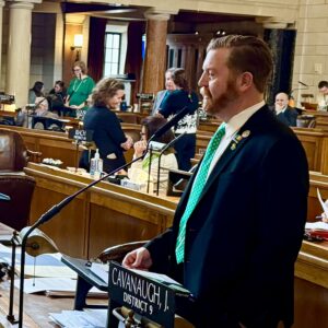 Both Cavanaughs were among those who spoke on the benefits of the measure and they also squeezed in Happy Patty’s Day wishes to those in the chambers — and a Happy Birthday to Lt. Gov. Joe Kelly.