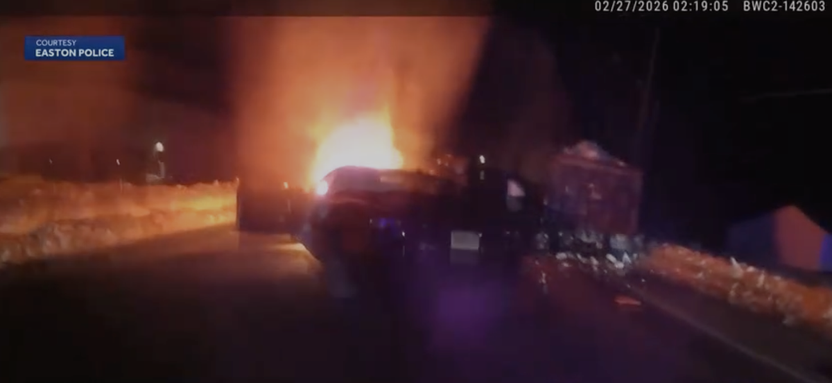 Francis Leverone said he is grateful to be alive after he crashed his truck into a parked dump truck full of snow while driving in Massachusetts in February.”I see something down the street, I didn’t think anything, then all of a sudden I got closer, I did a sneeze,” Leverone, 78, said. “Must have pulled my hand down, and the truck was right there.Another car, a 2024 Toyota Camry, collided with the rear of Leverone’s 2013 Ford F-350, setting both ablaze. Leverone became trapped in the crash after dislocating his leg. “I was hurting, trying to get me out of that window,” Leverone said. “They ended up breaking my window.”Two brothers who were passing by, along with a responding Easton police officer, helped pull Leverone out of the burning car. “I see them getting under my arms, and I guess one of the brothers got inside the truck, trying to get my leg untangled, so I could stretch it, then they pulled me straight out,” Leverone said.The good Samaritans helped carry Leverone to safety. He suffered several injuries, including a dislocated right hip and a broken wrist.He is now recovering at a rehab facility in Braintree, grateful to be there instead of trapped inside a burning car. He said he only has words of thanks for the men who helped save his life.”God bless them, even my wife wants to God bless them, I survived,” Leverone said.