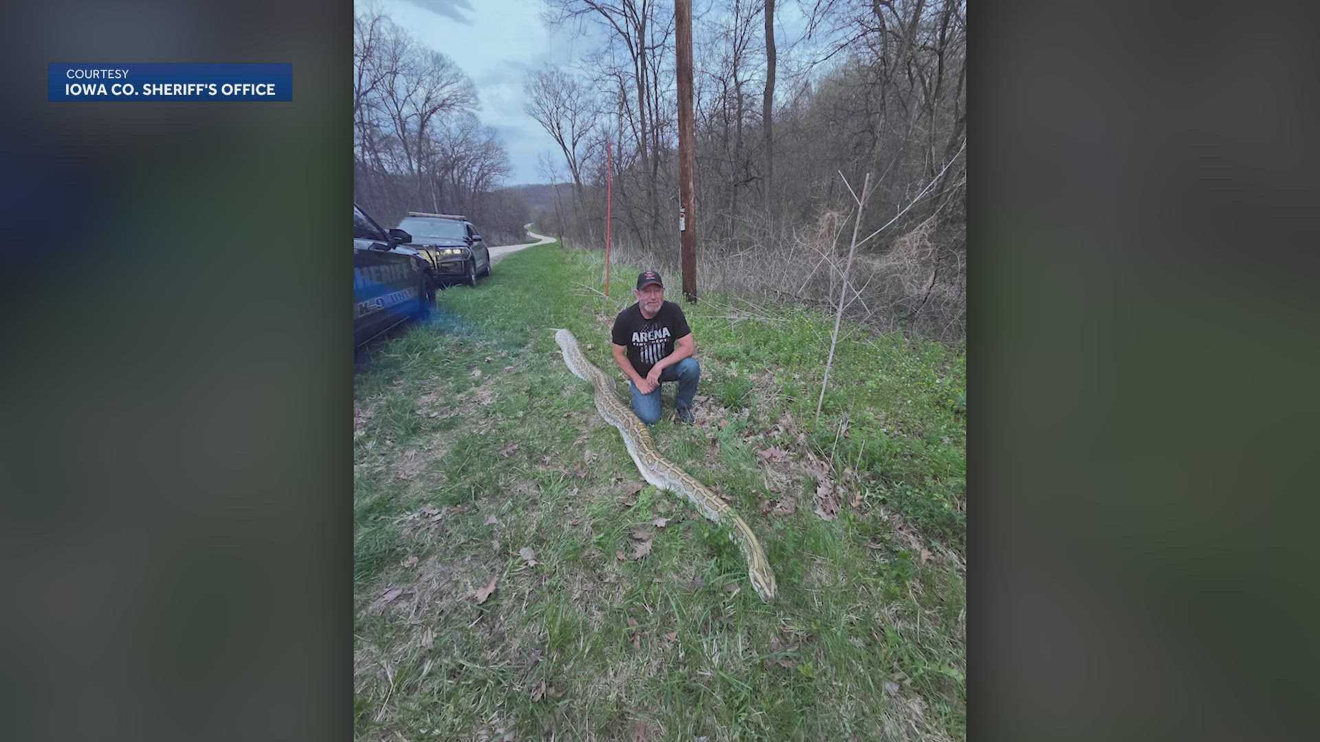 Pictures posted by the Iowa County Sheriff’s Office show the snake measuring several feet in length.