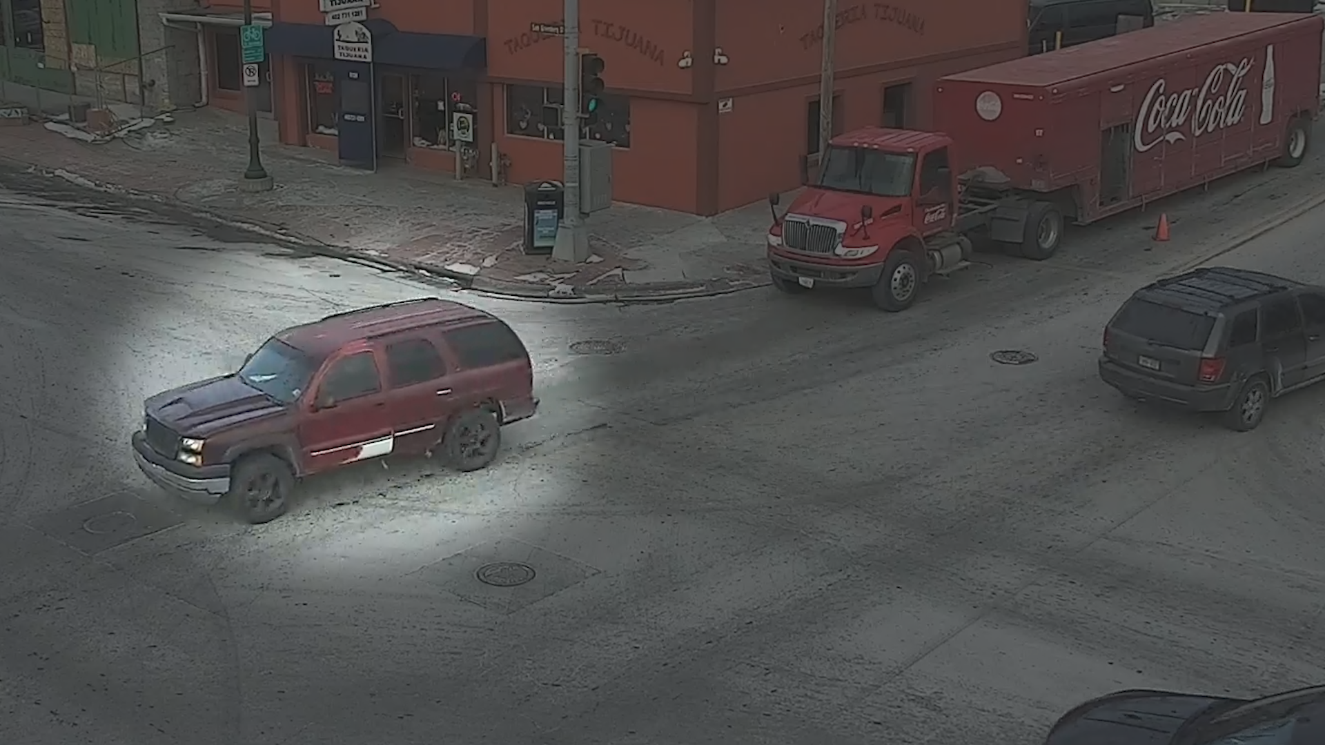 Although the suspect’s face is difficult to discern, police have a clear image of his car. It’s a beat-up mid-2000s maroon Chevy Tahoe with a damaged bumper, heavily tinted windows, a faded white area on the driver’s door and black wheels.