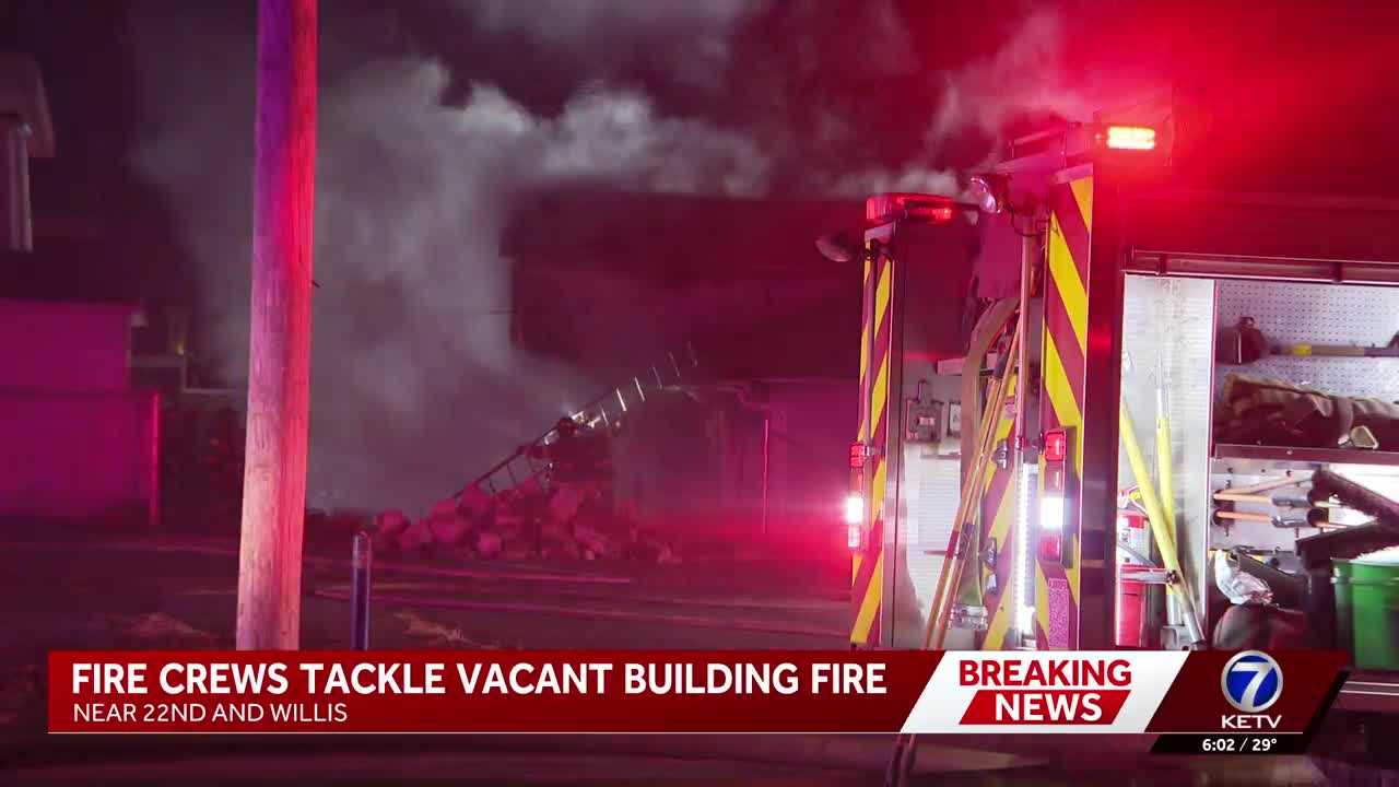 Omaha firefighters battled a fire early Thursday behind a vacant garage in north Omaha. Crews were dispatched just after 1 a.m. to a two-story detached garage that was on fire behind the vacant mortuary home.Fire officials said access was difficult because multiple fences had to be removed. They also said there were signs of unhoused people at the property.The structural damage was significant, with estimates of up to $50,000. According to the Omaha Fire Department, the second floor collapsed while firefighters were trying to put out the flames.No one was injured in the fire, and the cause remains under investigation.NAVIGATE: Home | Weather | Local News | National | Sports | Newscasts on demand |