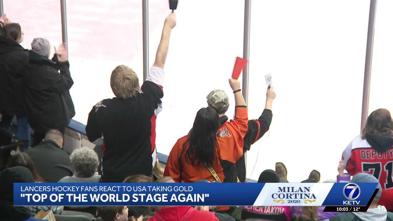 It was a double dose of hockey for many Lancers fans on Sunday.After they watched Team USA claim gold Sunday morning, the Lancers delivered a win of their own in the evening, 3-0, as they hosted the Waterloo, Iowa, Black Hawks.Lifelong Lancers fan Beth Simoens said even those who typically don’t follow hockey were reaching out to her with excitement during the gold medal match. Lancers fan Dylan Cochrane said the USA’s win brought him “pride.” “What a display by both teams,” Lancers General Manager Marc Fritsche told KETV. “It was incredible. Just back-and-forth hockey.” He said the game inspires the Lancers’ young players to aspire to represent their own countries.”We have kids from all over the world here,” he said.While no former Lancers were on Team USA, former Lancer Erik Haula helped Finland win bronze. The Nashville Predators forward scored two goals in the third-place game. Lancers coach Ron Fogarty, who is Canadian but later earned his U.S. citizenship, expressed his support for both teams.”Forty-six years ago was the miracle,” Fogarty said, referring to when the USA shocked the world and defeated the Soviet Union. Fogarty said, like that game, “This game hopefully will spark another great generation of players to come.” Team USA held up the jersey of late NHL star Johnny Gaudreau after the win. Both Johnny and Matthew Gaudreau, brothers, died in a car crash the night before they were to attend their sisters’ wedding. Matthew Gaudreau was an Omaha Lancer. Colin and Deb Andersen, Matthew’s host family, said they know Team USA was playing for the Gaudreau brothers. They said they were thrilled to see them win and honor the family. Lancers unveil new mascot