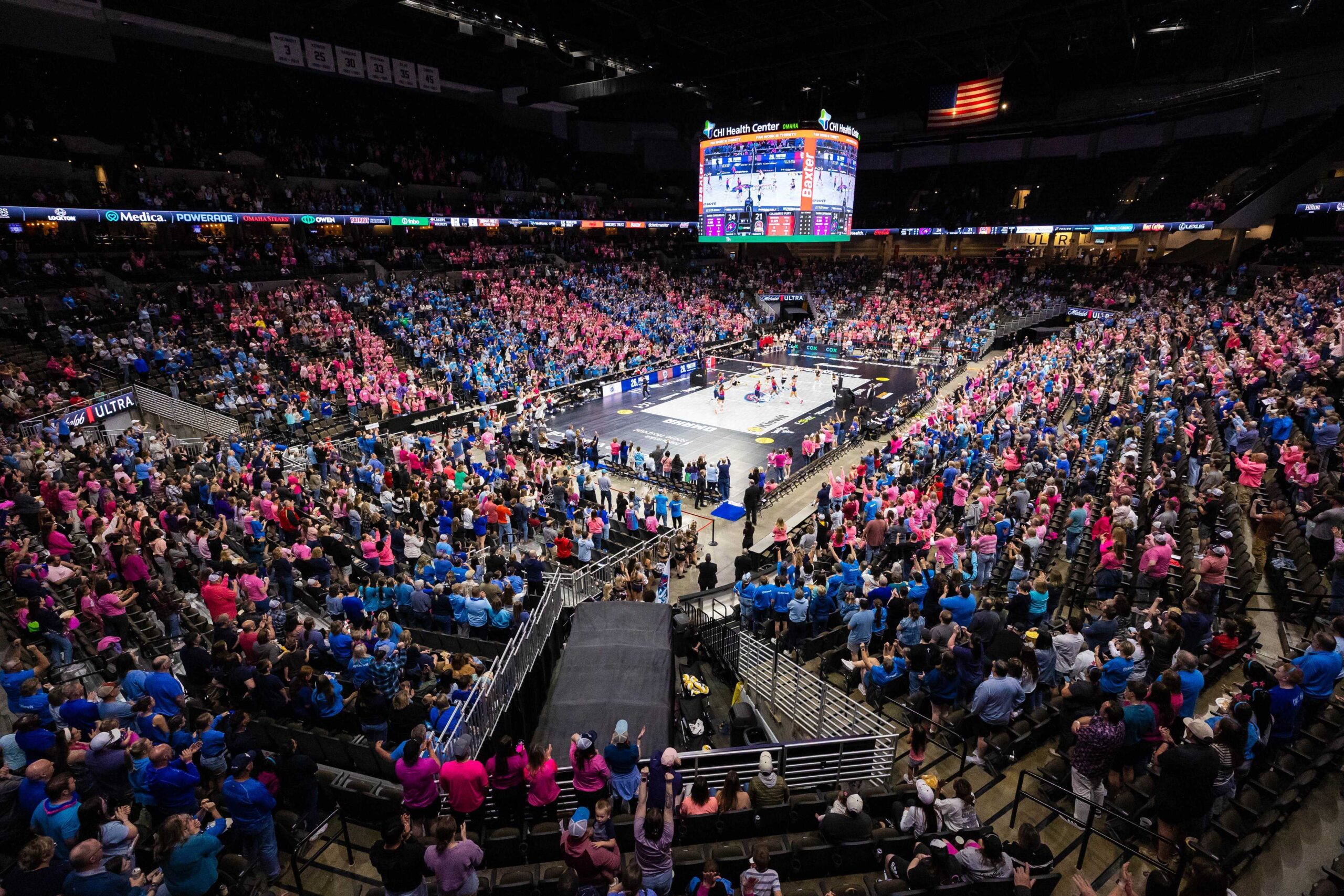 After tallying 14 kills, eight digs, and six blocks, Omaha took Set One 25-21.