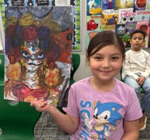 One third-grader painted a Dia de Los Muertos image, representing the Day of the Dead celebrated especially in Mexico, and said it reminded her of her grandma.