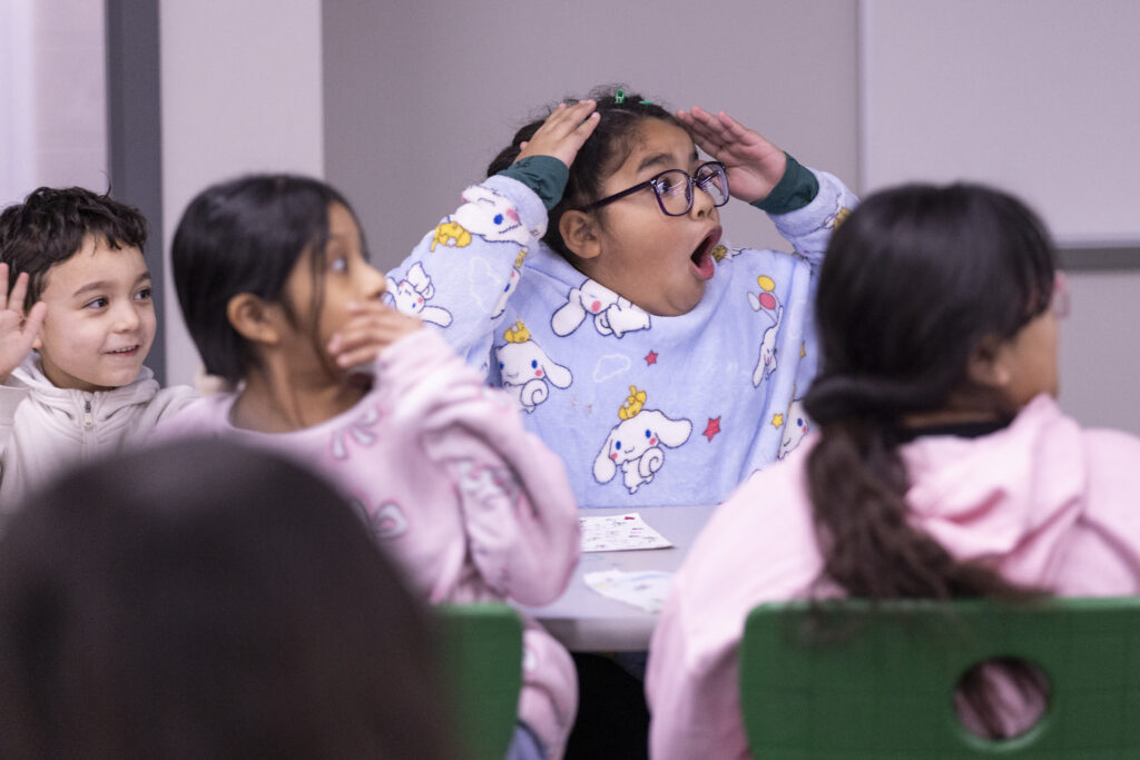 Students at Pine Elementary School in Omaha’s Little Italy area react to hearing they will be in the news for artwork they made as part of a cultural exchange program with Carlentini, Italy, a sister city of Omaha. Monday, Jan. 26, 2026. Some of the art will be added to murals at schools in Carlentini. (Anna Reed, Omaha Public Schools)