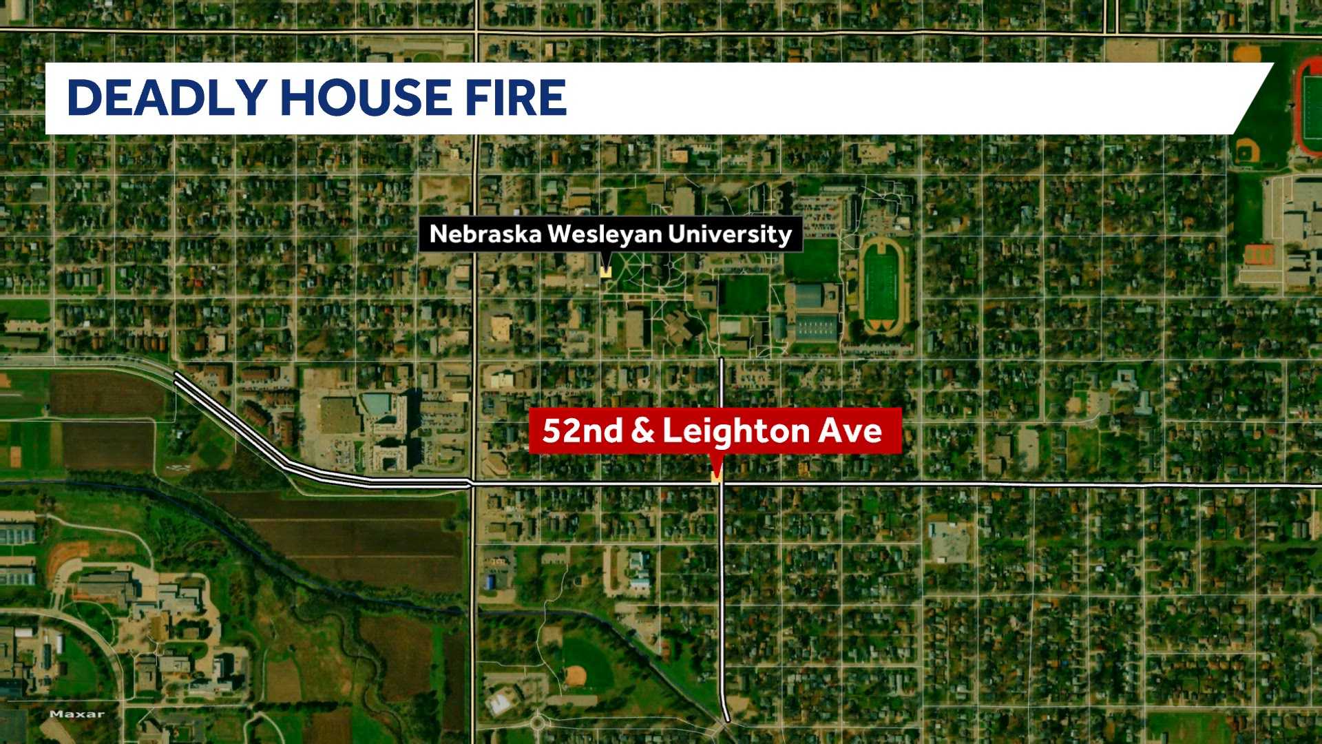 Crews responded to the scene of the fire near North 52nd Street and Leighton Avenue, which is located near Nebraska Wesleyan University.