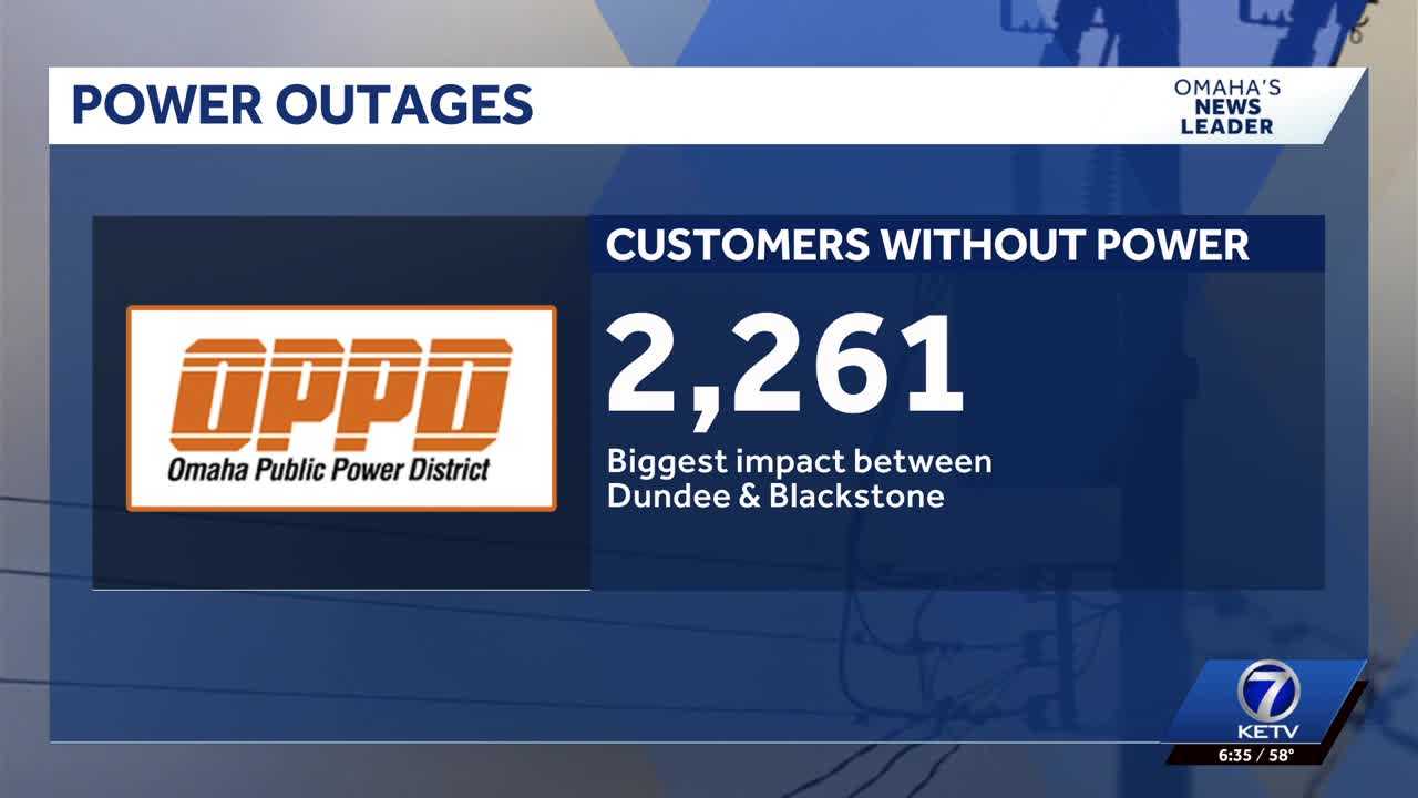 OPPD is reporting power outages as thunderstorms roll through part of the Omaha metro early Friday morning. By 7:40 a.m., outages dropped to around 180. At 7:10 a.m., more than 2,400 customers were in the dark. 6:30 a.m., more than 2,200 customers were without power. According to the outage map, the biggest impact was between Dundee and Blackstone.