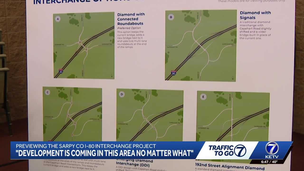 A new look is coming to Interstate 80 at 192nd Street.Right now, in the Sarpy County area, many roads are gravel. District Commissioner Jim Warren says the area is continuing to grow and will see lots of benefits from this long-awaited modernization.”The interchange conversation started multiple years ago. This one became realistic, I’m going to say, probably five years ago,” Warren said. Nebraska Department of Transportation (NDOT) engineer Barbara Gerbino-Bevins says NDOT will lead the interchange project.”Development is coming in this area, no matter what we do. And so, we’re just trying to get ahead of the curve on this,” Bevins said. Traffic volume projections expect the area of Interstate 80 at 192nd Street to skyrocket by the year 2050.Bevins says the project’s intention is to give relief at Highways 31 and 370 near I-80.”I drive the area a lot. Highway 370 is extremely crowded,” Warren, who also lives in the area, said.And other residents agree, many attended NDOT’s first public meeting for the project.PREVIOUS COVERAGE: NDOT hosts public open house for Sarpy County interchange project”Quite frankly, I am seeing it as a very good plus for (residents) in the future,” a meeting attendee told KETV.An official interchange design hasn’t been chosen yet, but NDOT says it will most likely involve multiple roundabouts. To see interchange options, click here.Construction will start early in 2027, and it’s expected to last through late 2028.NDOT says it’ll have final design plans by this summer. NAVIGATE: Home | Weather | Local News | National | Sports |