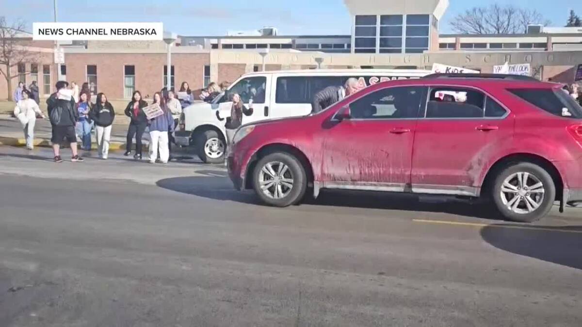 “At one point, a few students entered the street. One student was hit by a car that stopped in front of the crowd and then began moving,” Fremont Public Schools said in a statement.