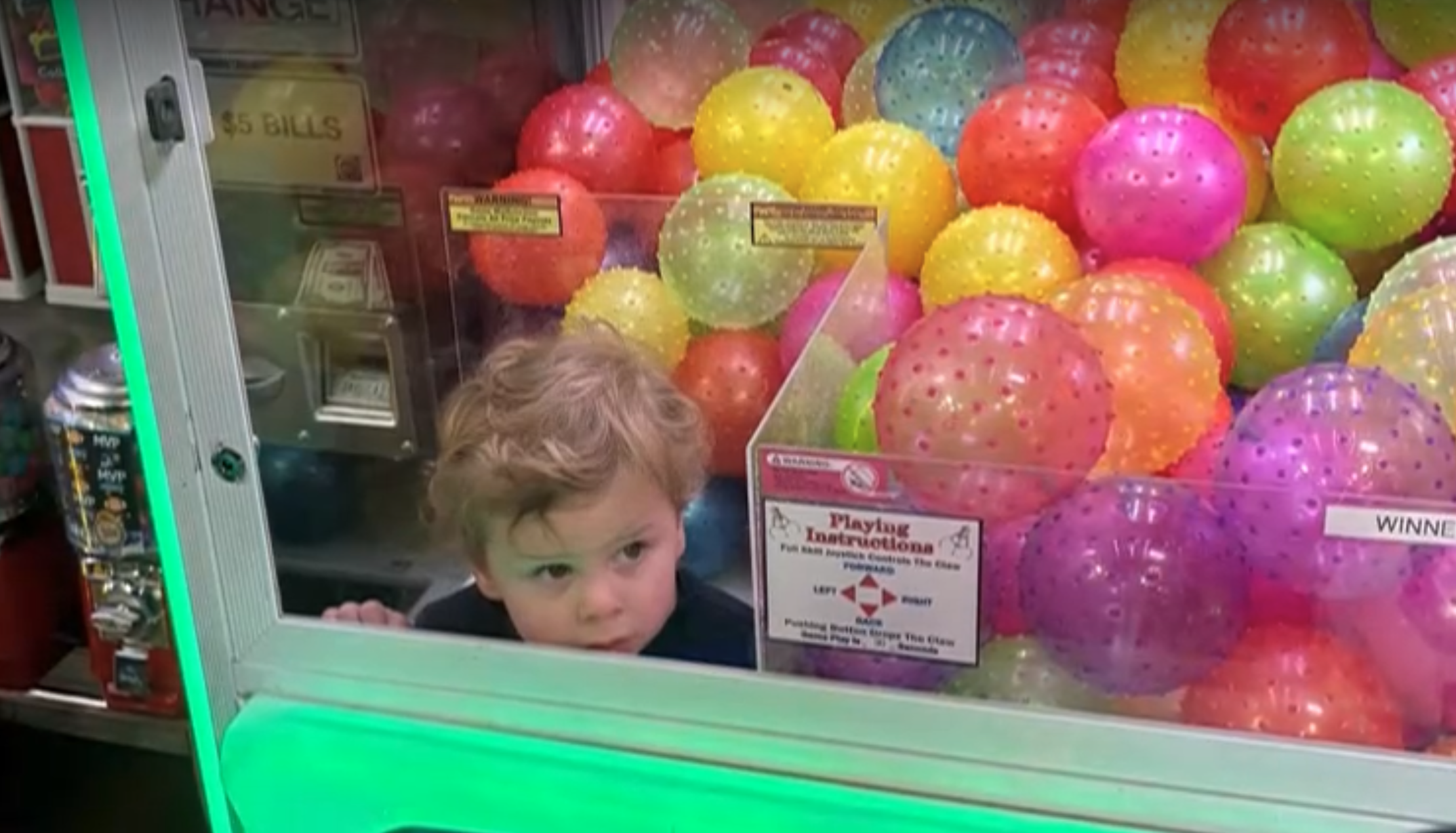 For 3-year-old Patrick Campbell, the decision to climb inside a claw machine was simple.