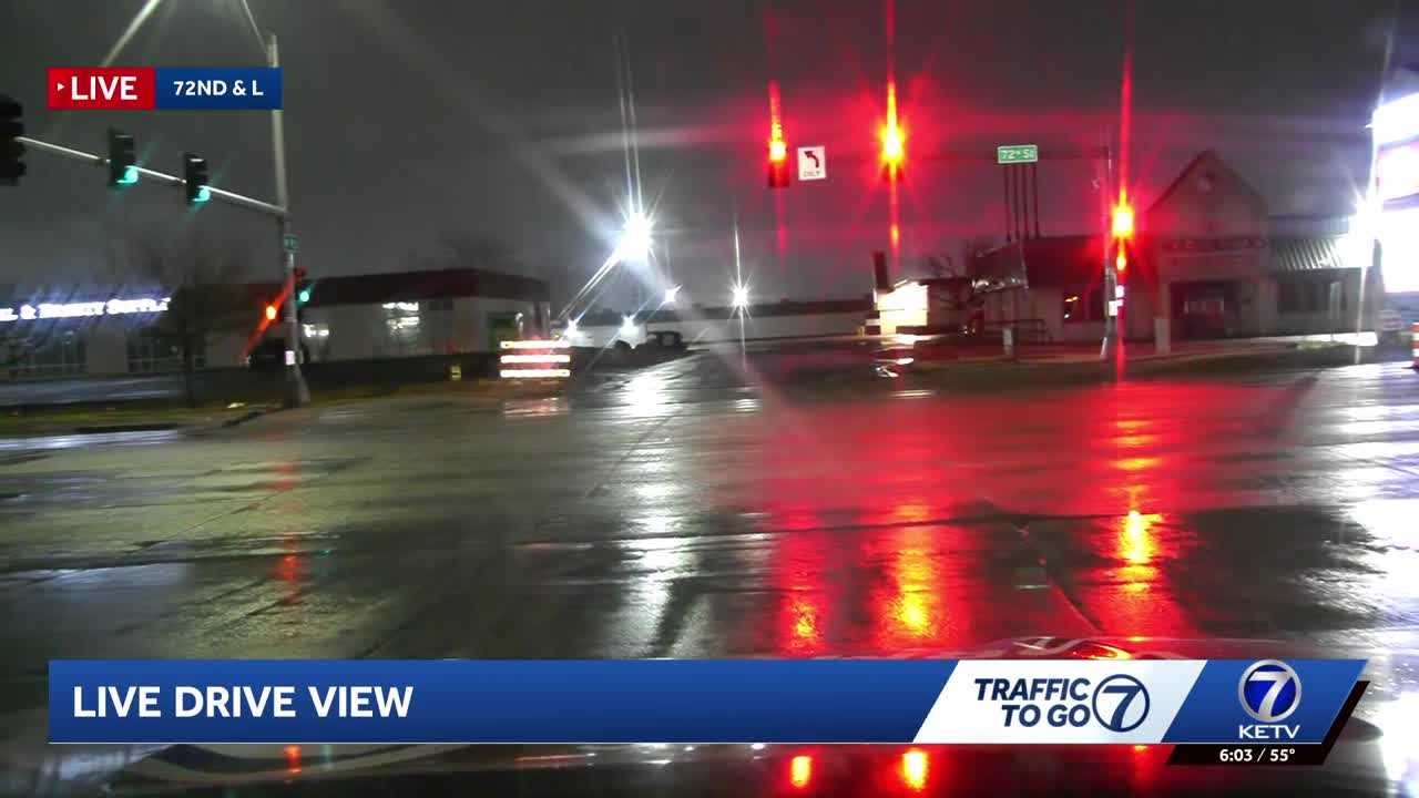 For immediate updates on crashes and commute delays, visit KETV Traffic’s Anchor X’s page here.8 a.m. Crash at 84th and Cary Streets6:30 a.m. Over 2,000 OPPD customers are without power right now, prepare for traffic lights to be out. See the latest outage updates here6 a.m. Crash at Hwy 370 at 36th Street, three vehicles involved5:30 a.m. Expect rain during the morning commute and strong storms for the evening driveNAVIGATE: Interactive Traffic MapKETV is live with updates on your commute at 7:23, 7:56, 8:27 & 8:56 a.m. NAVIGATE: Home | Weather | Local News | National | Sports | Newscasts on demand |