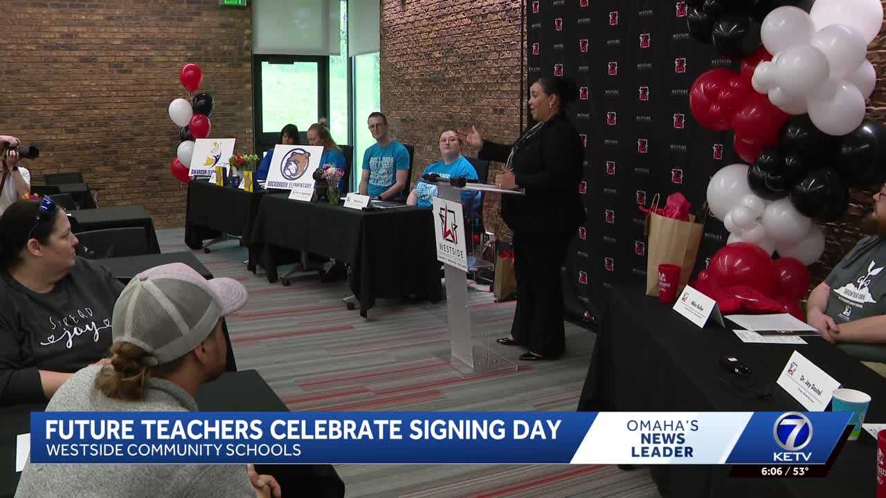 The Westside Community School District celebrated incoming teachers with a signing day event.Several future educators took part in Westside’s “Grow Our Own Program” and will be graduating next month.On Monday, they took part in a signing with the Westside schools they’ll be teaching at within the district next year.One soon-to-be-teacher told KETV that the program made a huge difference in her decision to go back to school.”The change is hard, but I’m so glad I did it because now I would have done it over and over again, and I feel like I would have done this program in a heartbeat.”The program helps teachers earn their teaching degrees in just two years, including time spent student teaching.Make sure you can always see the latest news, weather, sports and more from KETV NewsWatch 7 on Google search.NAVIGATE: Home | Weather | Local News | National | Sports | Newscasts on demand |
