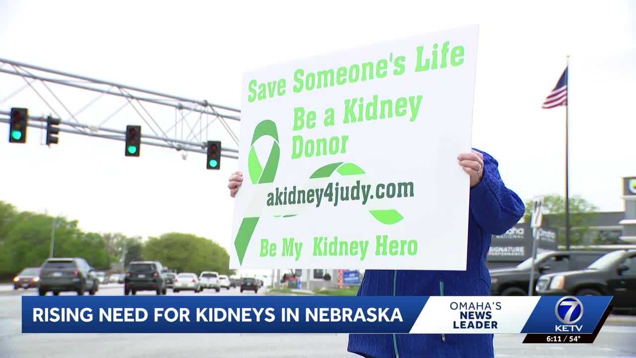Woman stands on Omaha streets holding signs and asking strangers to consider kidney donation